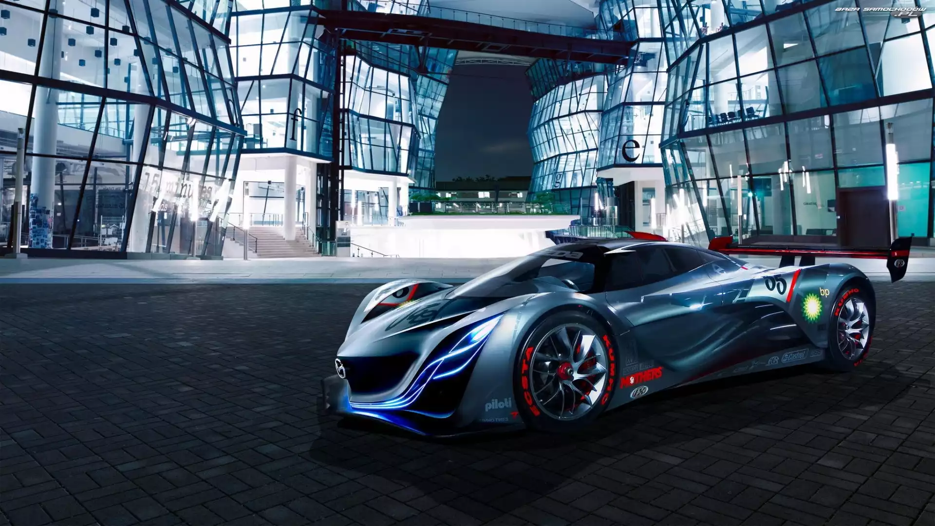Budynki, Mazda, Furai Spojler, Mazda Furai Niebo, Mazda, Furai Tunel, Mazda, Furai Sport, Mazda Furai, Tor Mazda Furai, Zakręt Fractalius, Mazda, Furai Ksenony, Tło, Mazda Furai, Szare Samochód, Prototyp, Mazda, Rajdowy Mazda Furai, Wloty, Powietrza