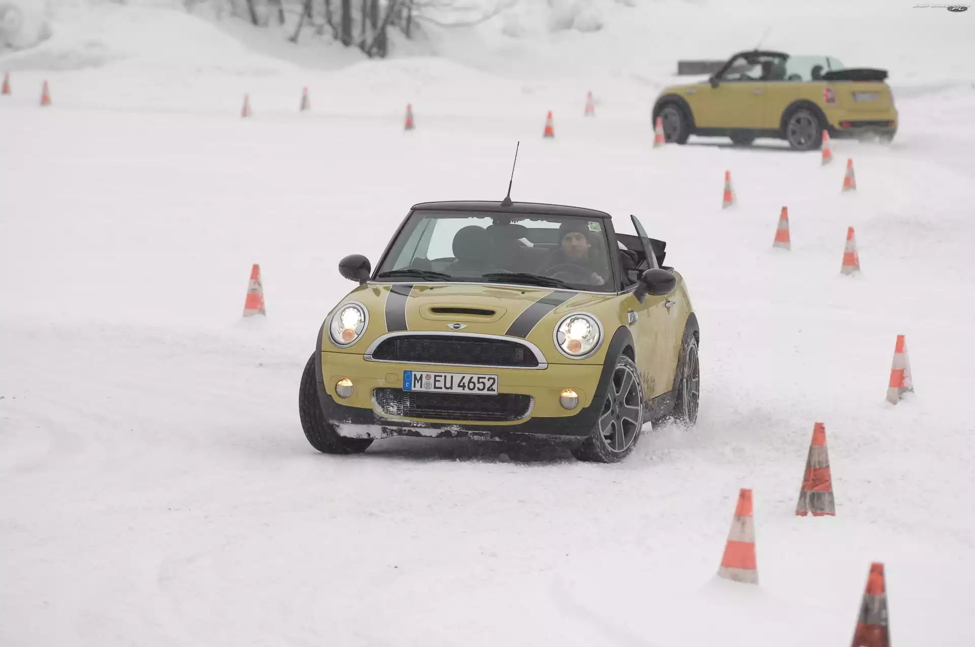 Slalom, Mini Cooper Cabrio, Zima- Zdjęcia samochodów