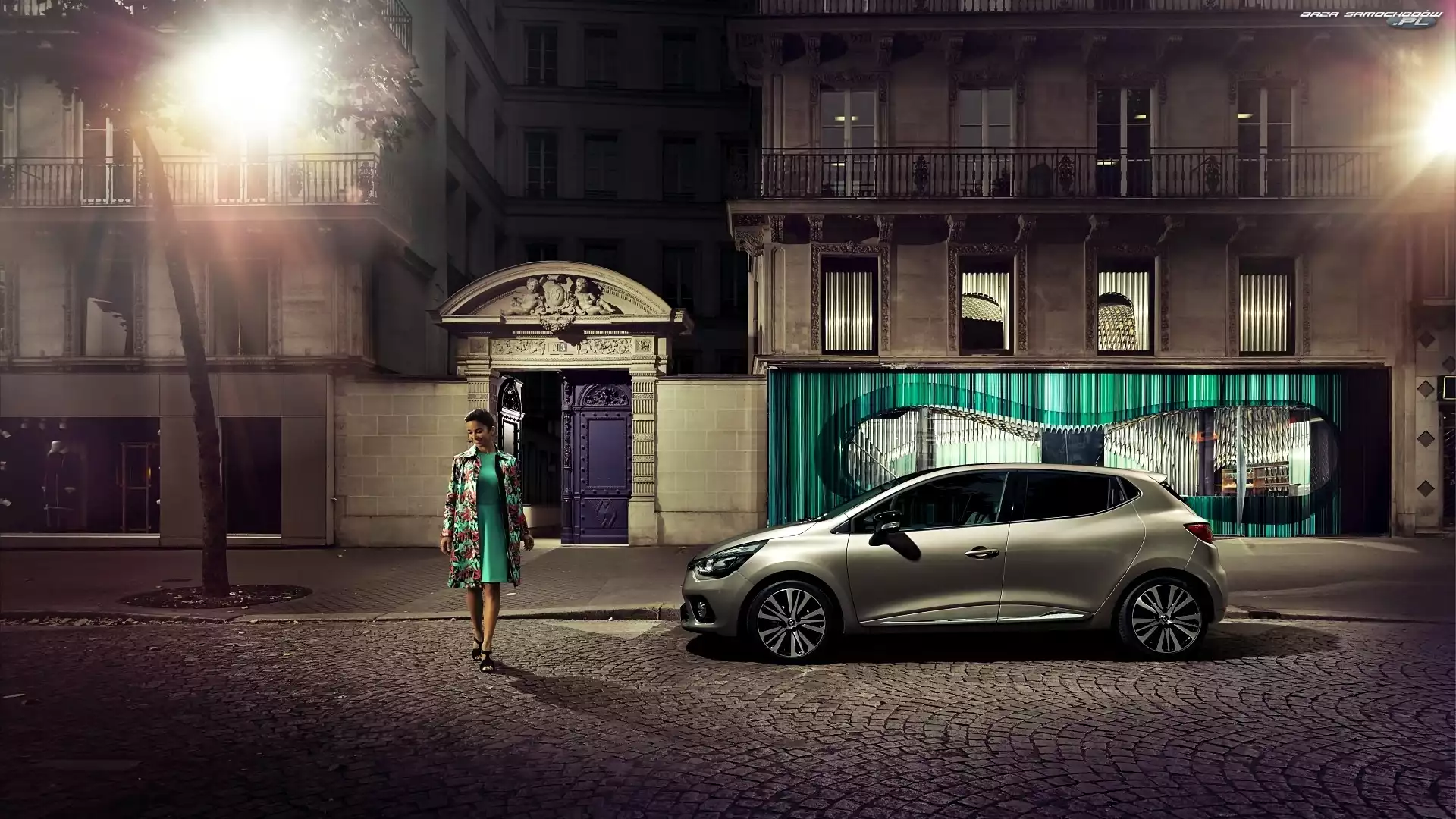 Ulica, Renault, Kobieta, Wieczór, Clio, Domy- Zdjęcia samochodów