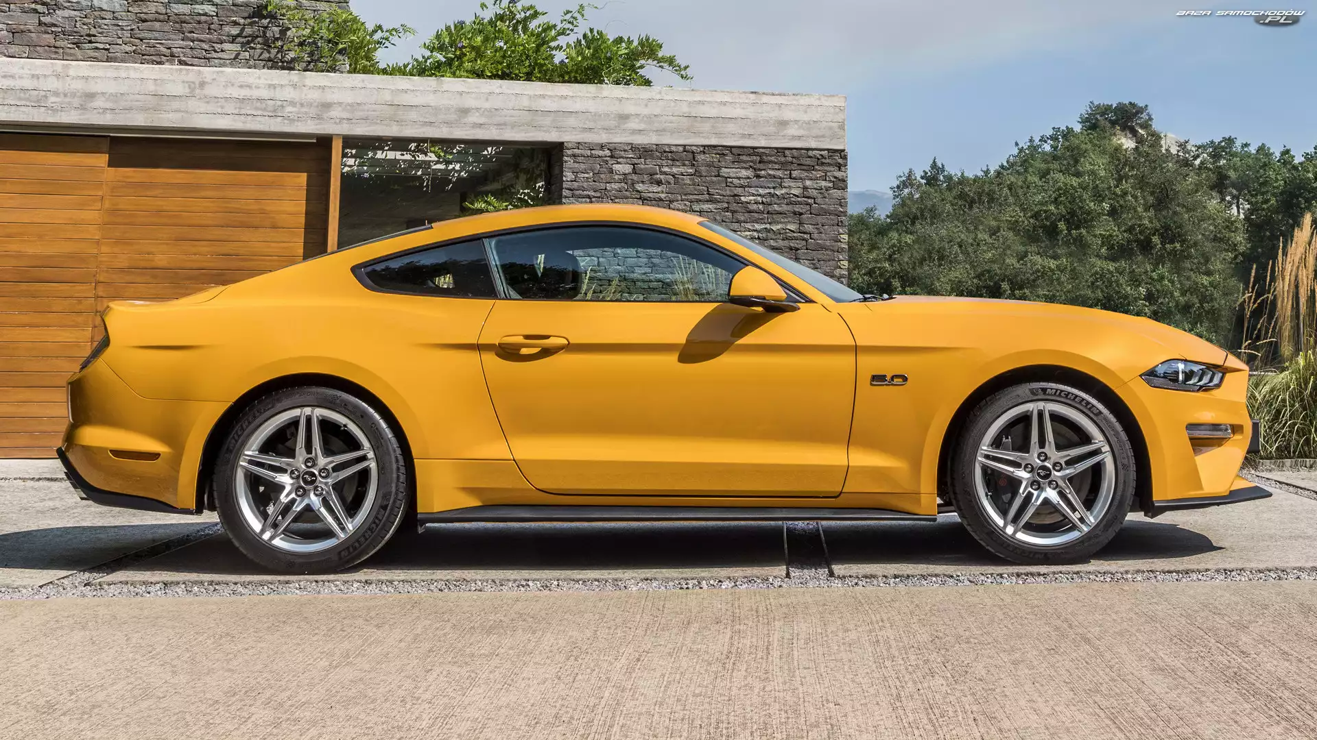Bok, Żółty, Ford Mustang GT- Zdjęcia samochodów